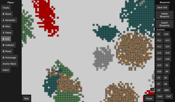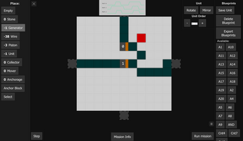 Resource management would be the biggest limiter on building anything of actual interest instead of just cleaning the map. There's not really much reason to build a whole suite of logic gates just to mine more of the finite blocks. The main draw of such a complex system is the hopes of building something complicated. Such an undertaking would take hundreds of units with their own nested/recursive units all with varying costs, I just can't see the current map sizes actually managing that. Rather than upscaling the world gen you can just make a renewable resource and crafting as the last bits of mission rewards. If you put them inside a unit then you would also save on clientside performance, staying loyal to the minimalist design.